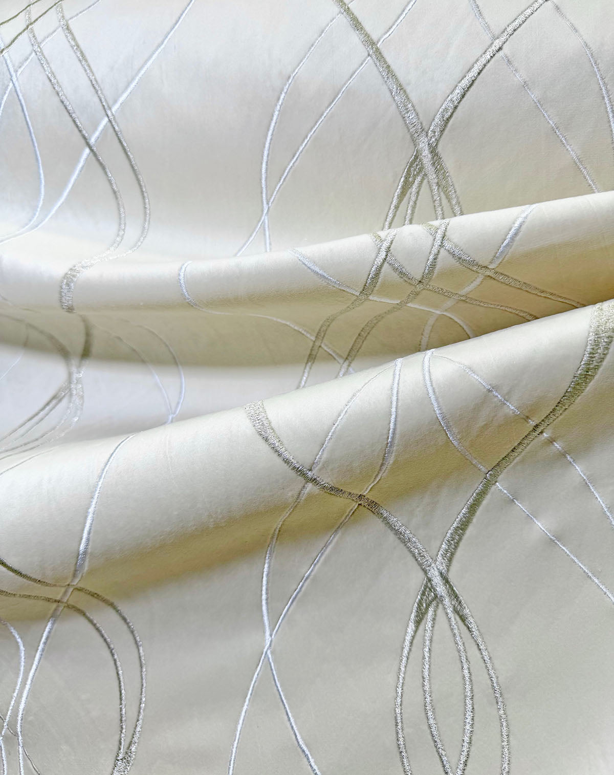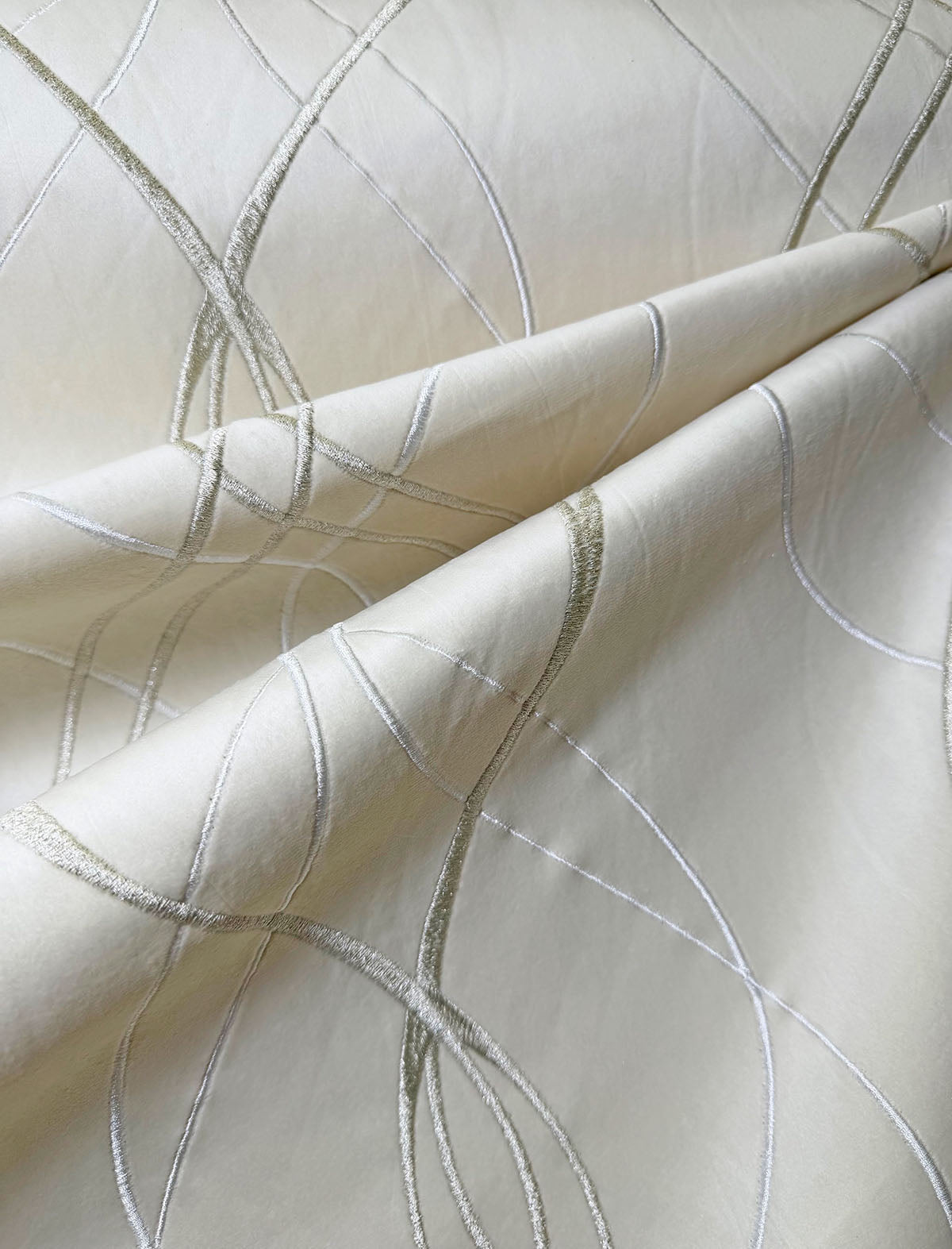 Rialto in the color Champagne is in shades of Beige, Tan and Taupe in an Embroidered hourglass velvet, 54" Wide, 100% Polyester, Repeats: H=17.75" V=15.5" Double Rubs: 92,000