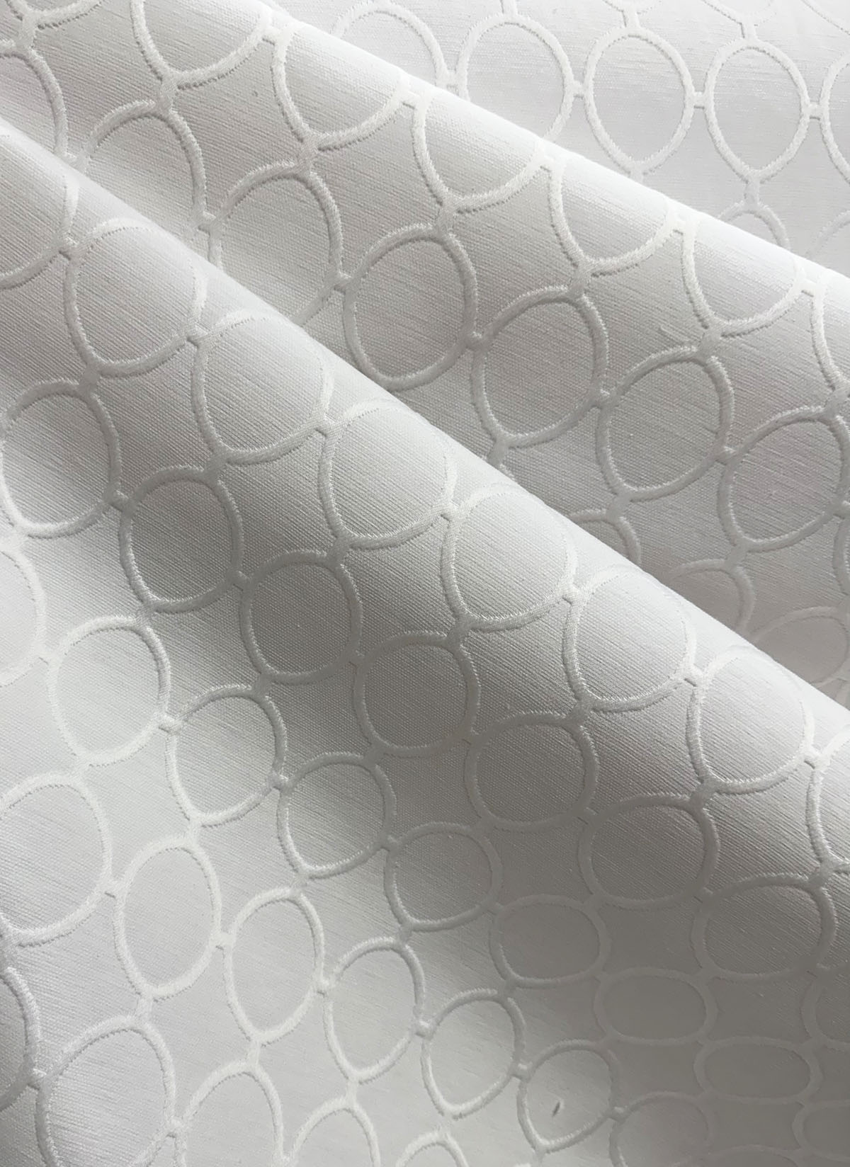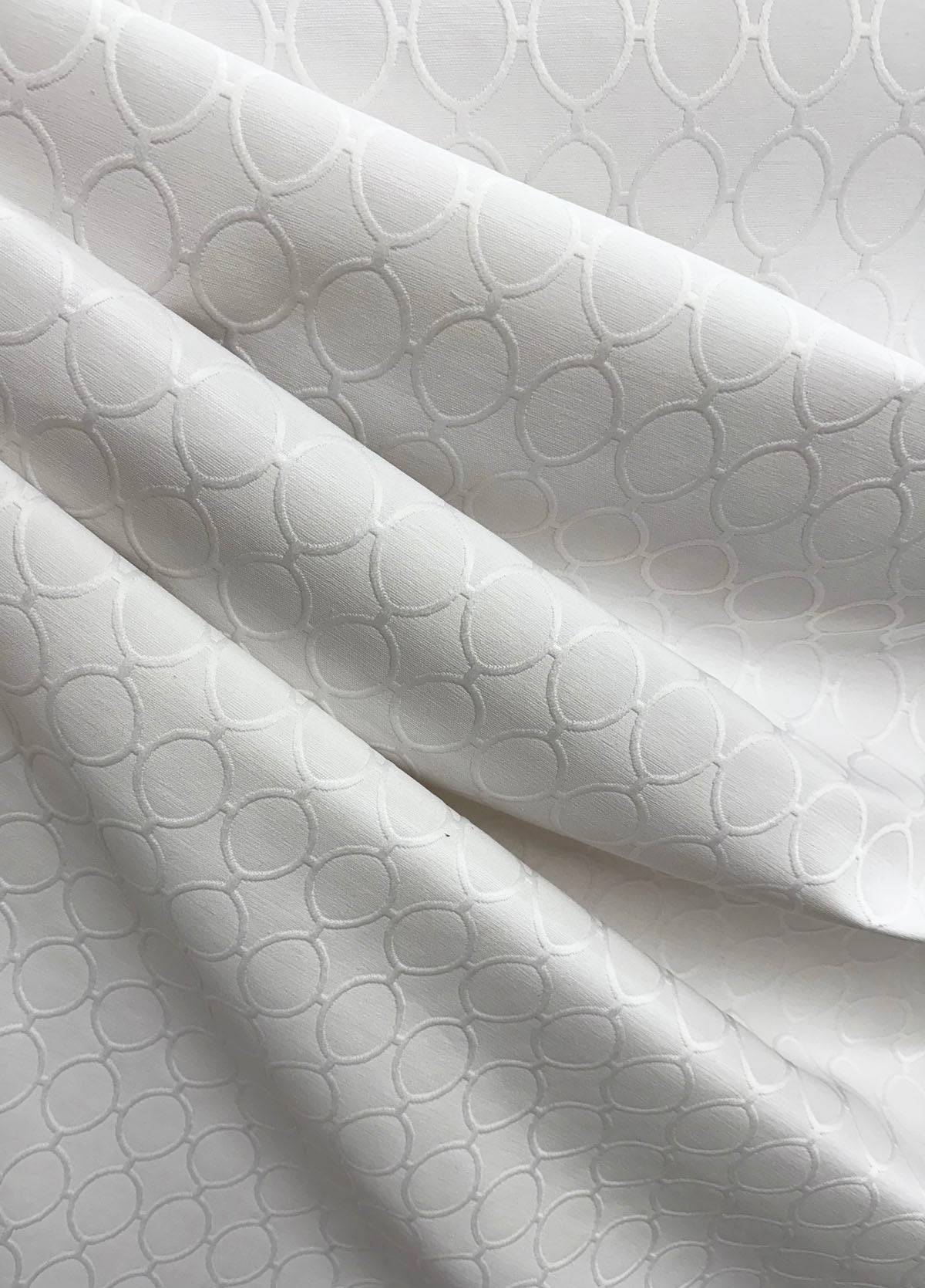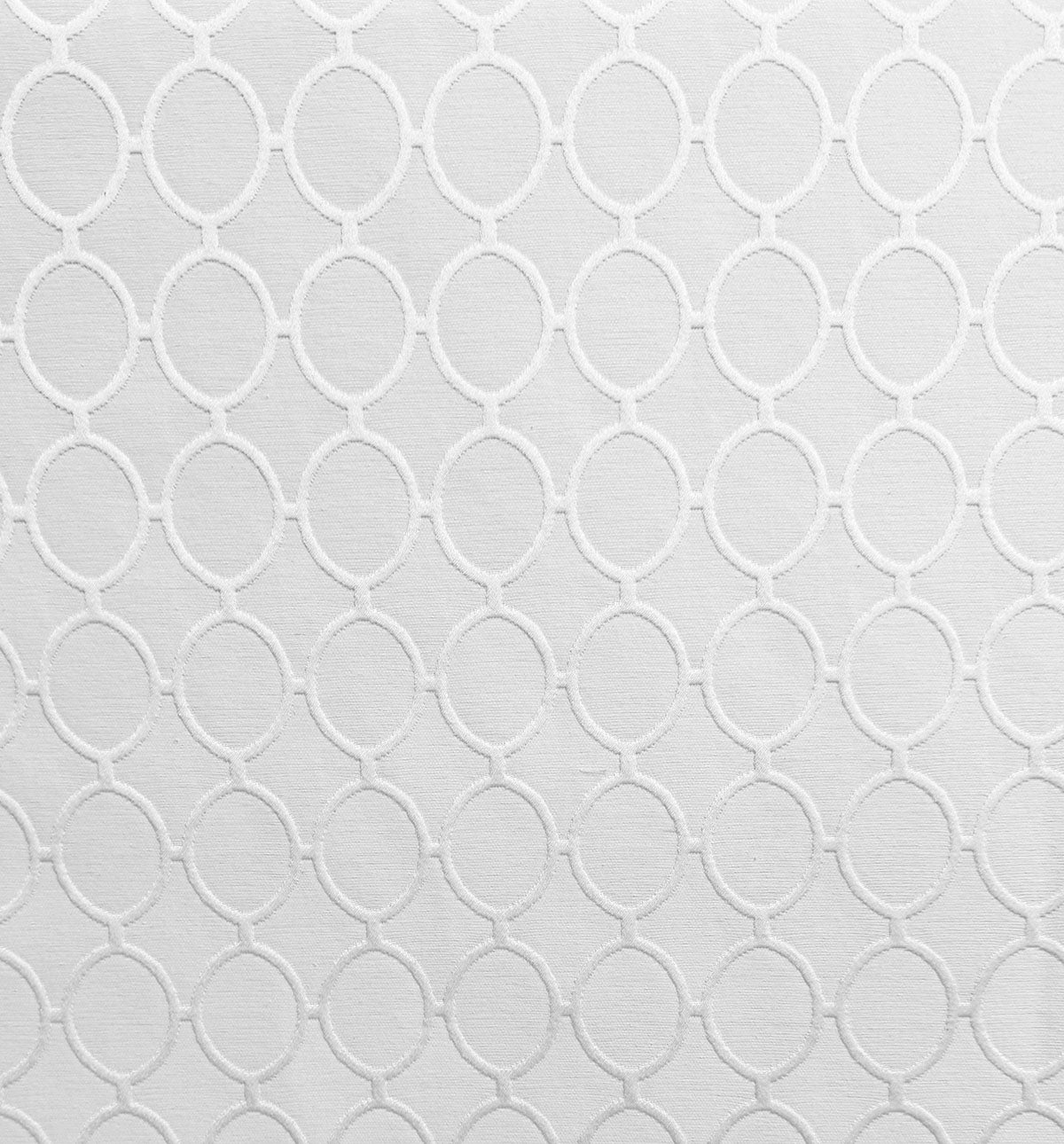 Cameo Ovals is a Bleached White Matelesse Oval print , 54" Wide, 68% Cotton, 32% Polyester, Repeats: H=2.000" V=2.500" Double Rubs: 30,000