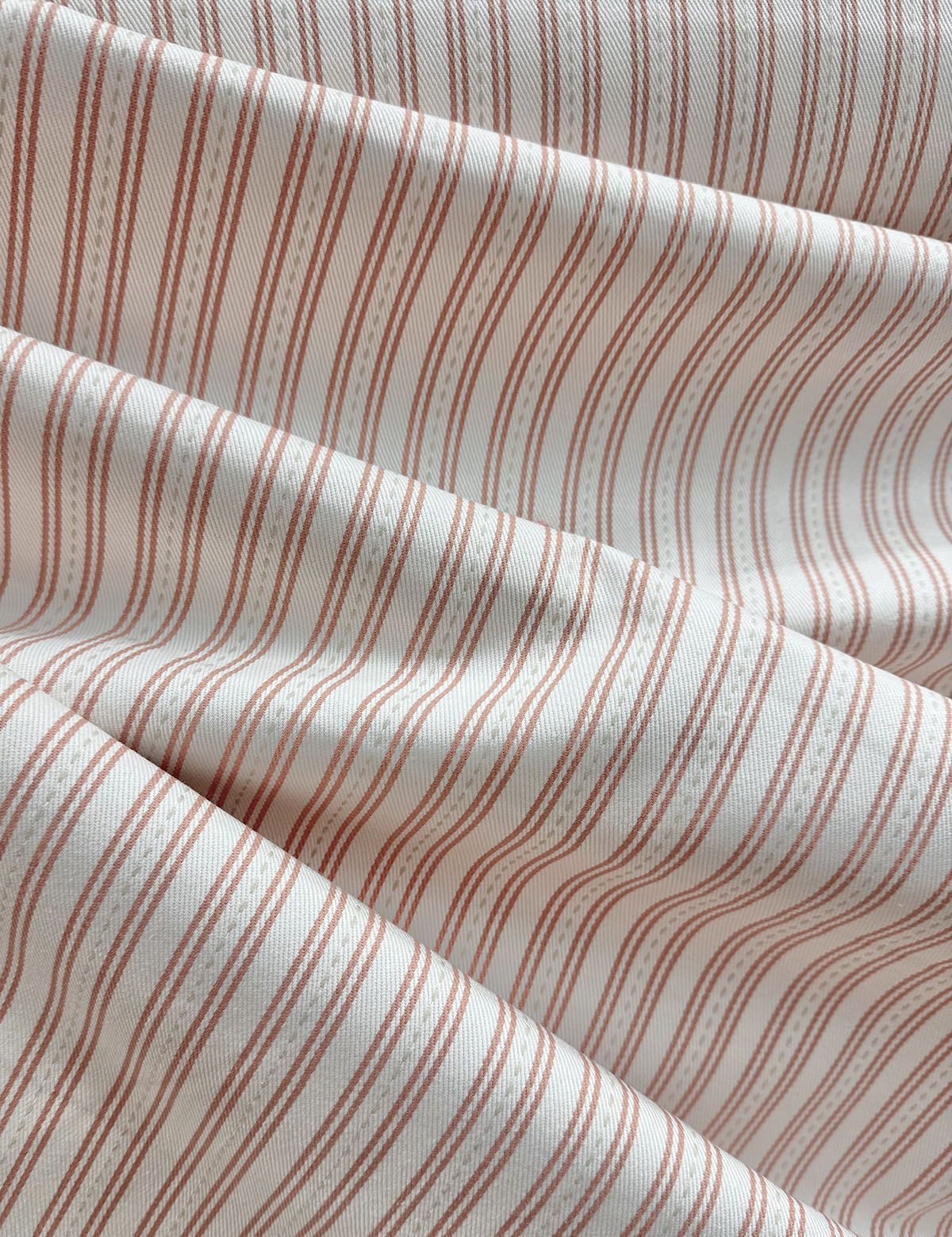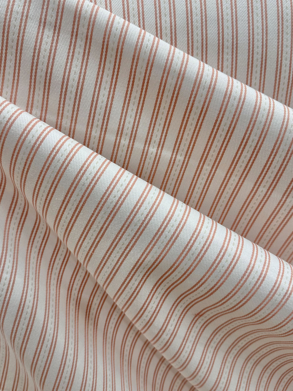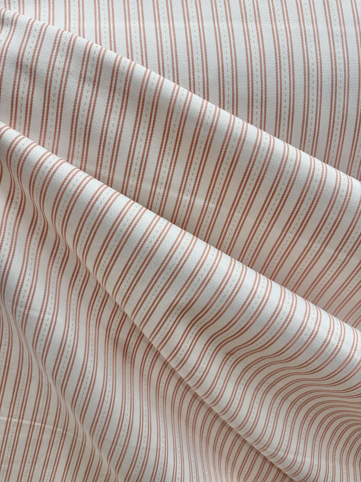 Olivia in the color Sorbet is a Coral colored Stripe w/dotted line, 54" Wide, 100% Cotton, Repeats: H=1.125" V=0.000" Double Rubs: 51,000