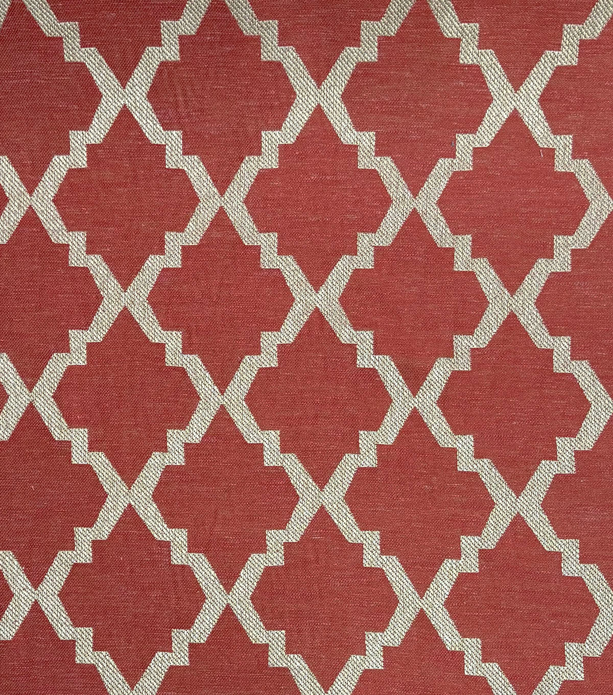 Bartin in the color Scarlett is a Lattice Fabric, 54" Wide, 17% Acrylic 65% Poly 14% Viscose 4% Linen, Repeats: H=6.75" V=6.75"