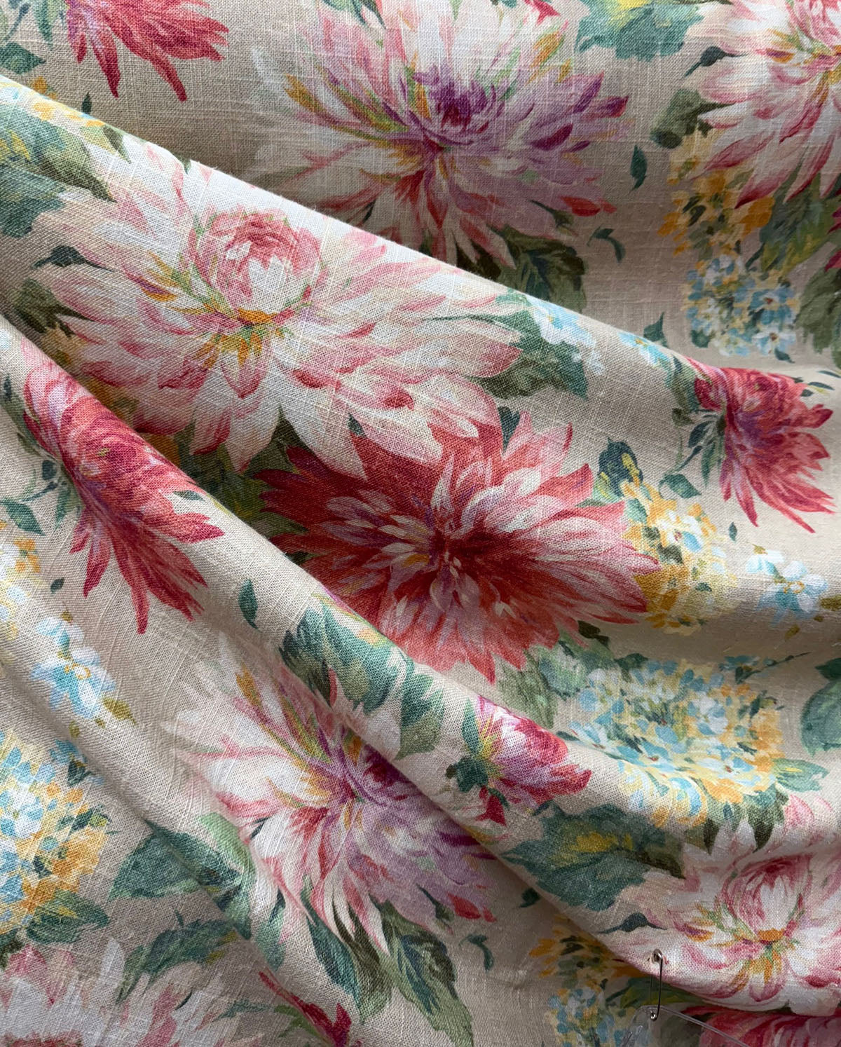 Dannica 107 in Vintage is a Floral fabric, 55.25" Wide, 52% Linen 45% Viscose, Repeats: H=27.5" V=.23.75" Double Rubs: 12,000 Flammability CAL 117-2013, UFAC 260 Class 1, Water Based Cleaners