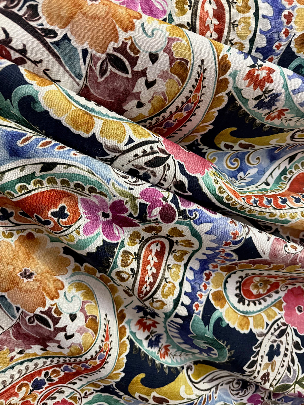 Finley in Navy is a Modern Paisley Print, 54" wide, 100% Cotton, Repeat: H=27 V=25.5 Double Rubs: 10,000