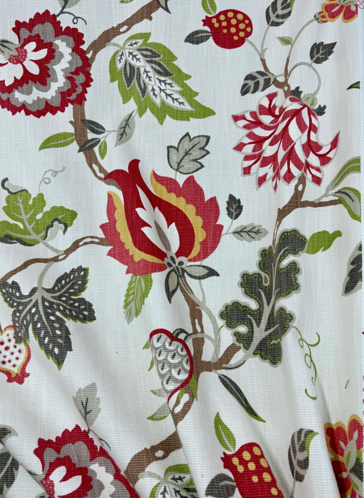 Folk Art in color Grenadine is a Floral Print on woven base cloth, 54" Wide, 100% Cotton, Repeats: H=54" V=27"