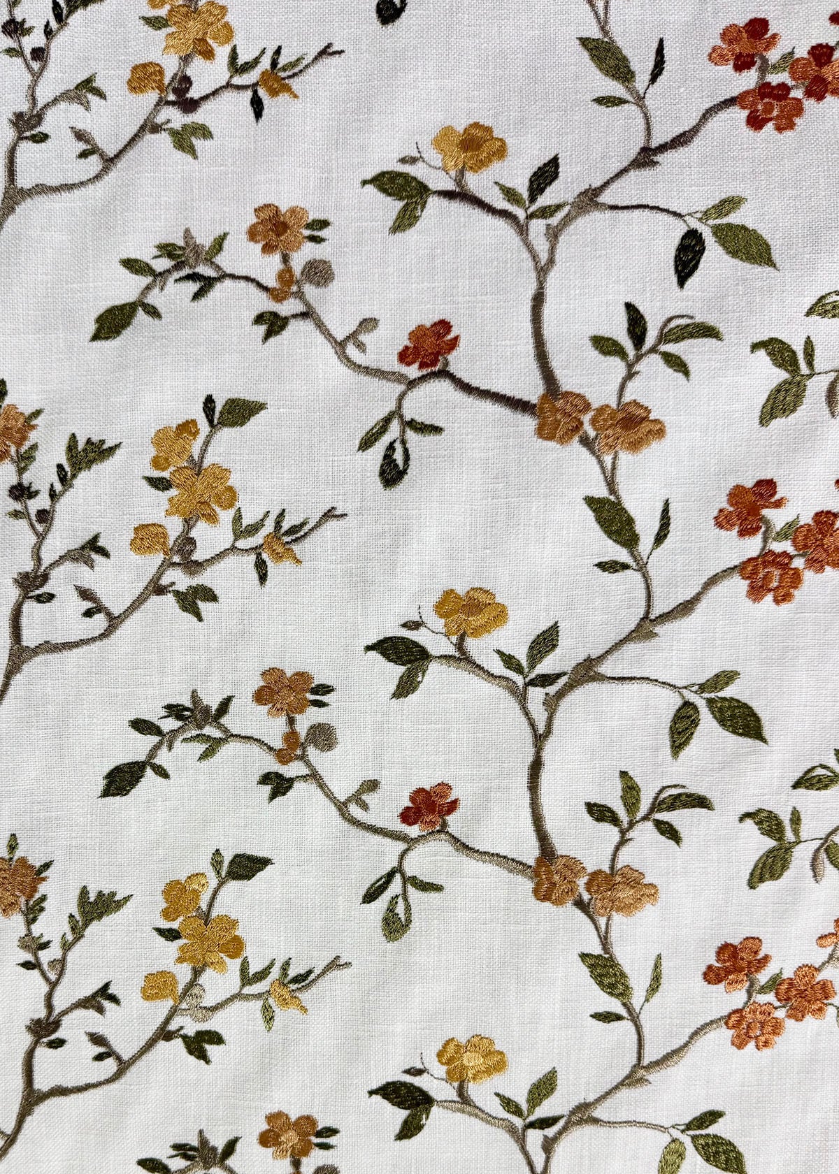 Giacomina in the color Garden is a Petit Viny Floral, 54" Wide, 52% Cotton 48% Poly, 100% Poly Emb, Repeats: H=26 V=6.25" Double Rubs: 30,000