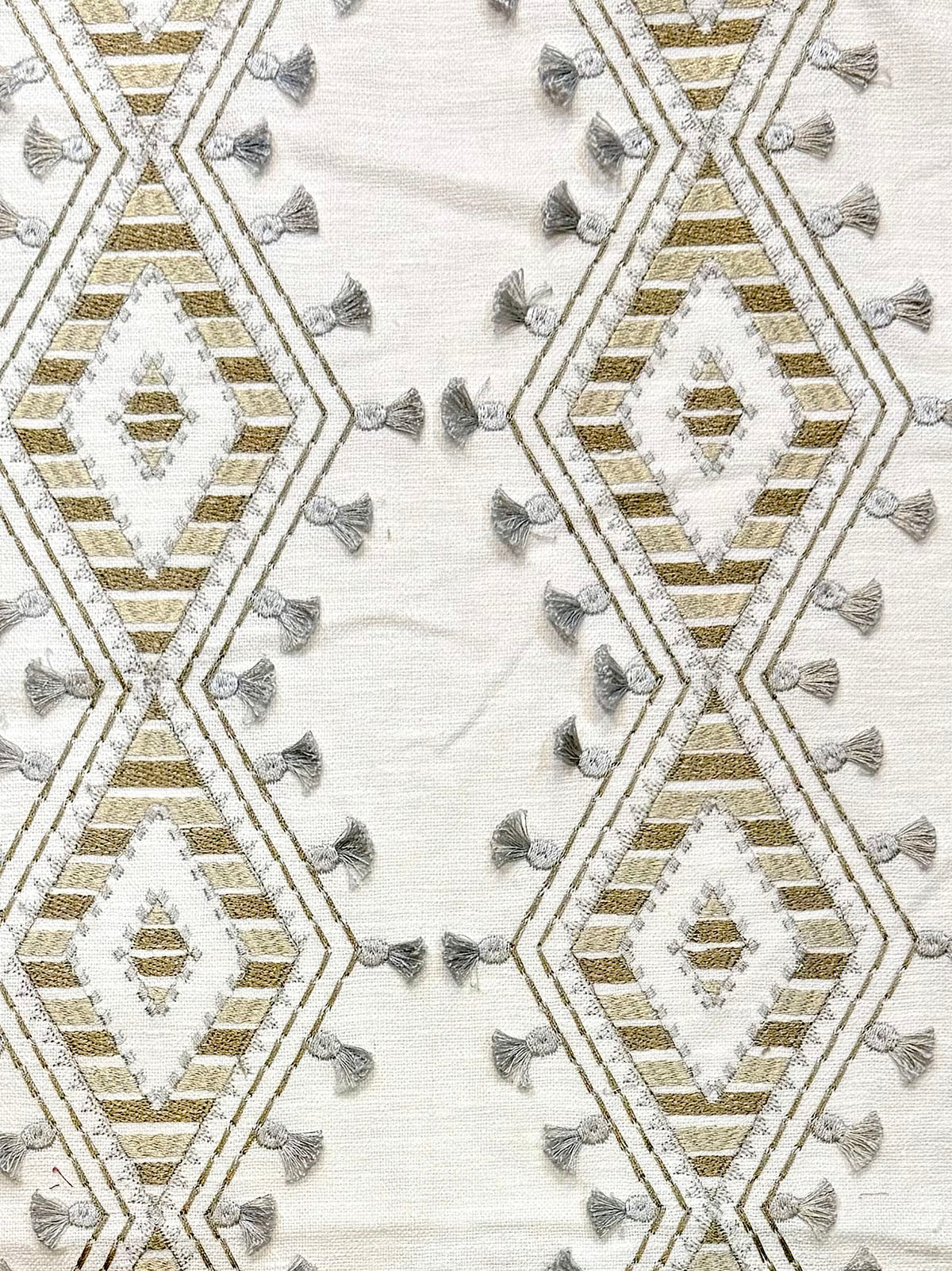 Ground Breaker in the color Metallic is an Embroidered Eyelash Diamond, 54" Wide, 29% Cotton 71% Polyester, Repeats: H=6.5" V=6.25" Double Rubs: 25,000