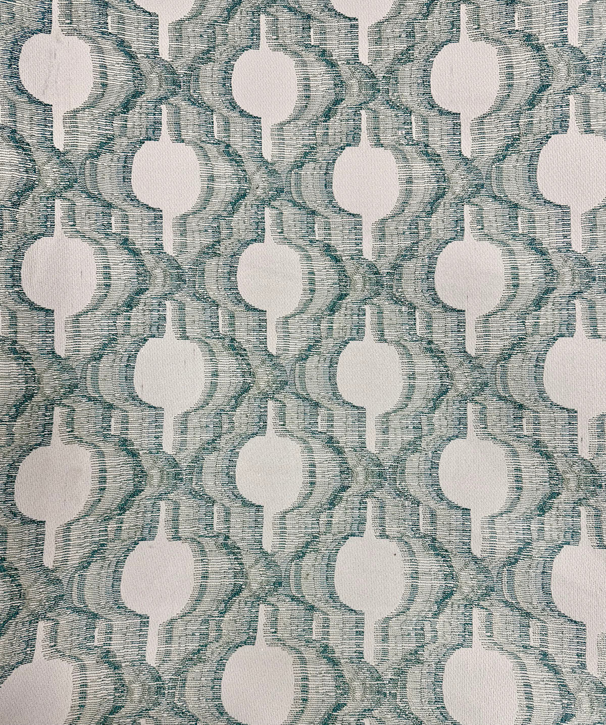 Keyhole in Seamist is an Embroidered Geometric, 54" Wide, 100% Polyester, Repeats: H=15" V=7" Double Rubs: 50,000