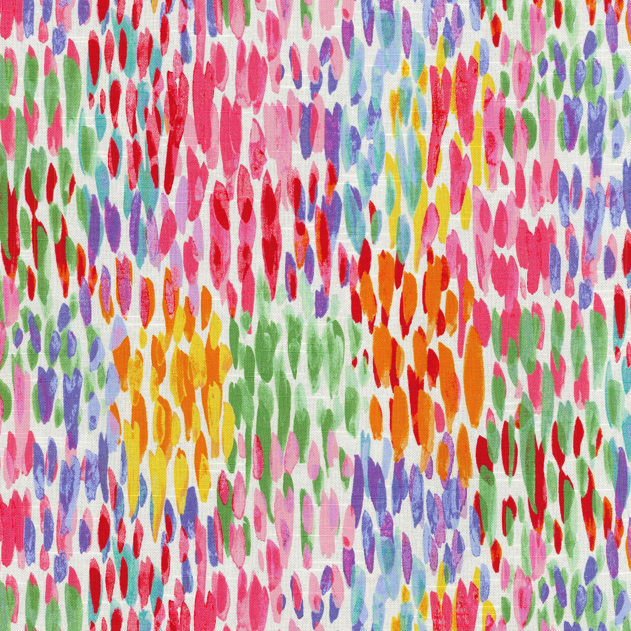 Make it Rain in Color Fiesta is a Colorful Raindrop print, 54" wide, 100% Cotton, Repeats: V=13.5" H=13.5", Double Rubs: 39,000. Design by Kelly Ripa Home