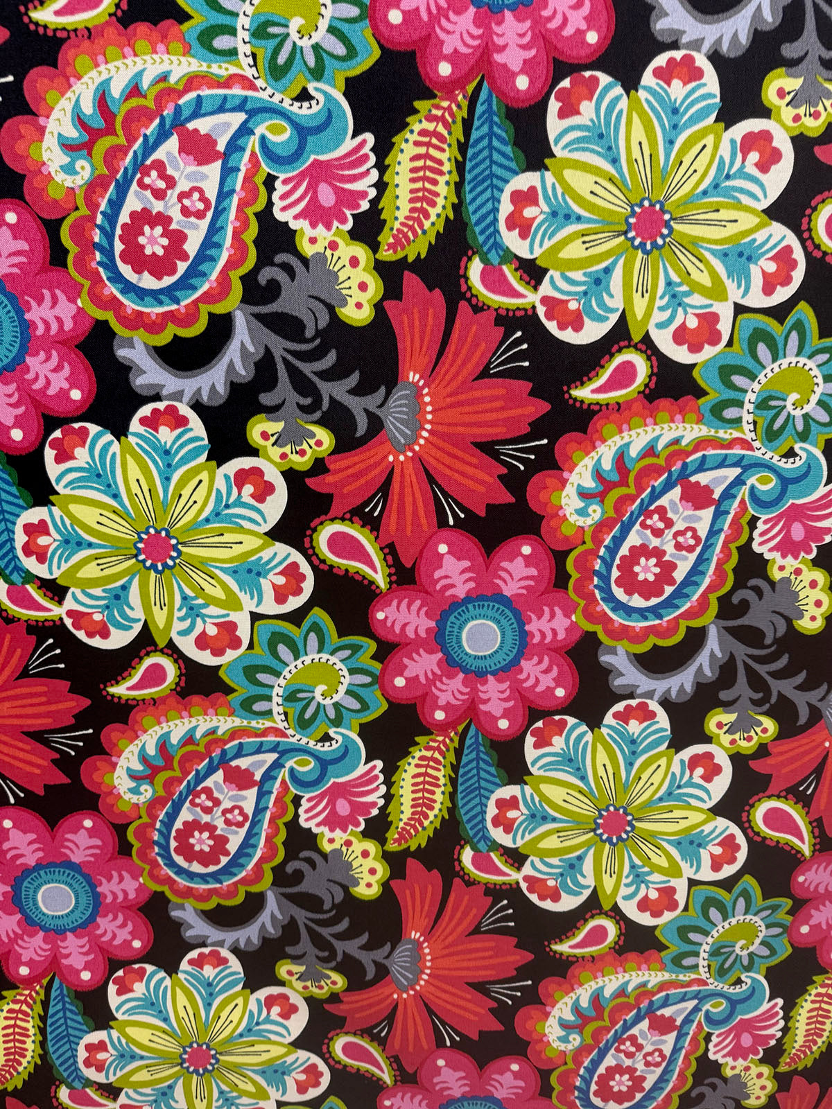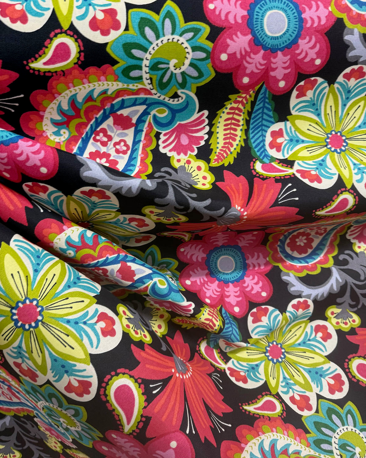 OD Flower Child in the color Spectrum is an Outdoor Floral, 54" wide, 100% Spun Polyester, Repeats: H=13.5" V=18" Double Rubs: 51,000
