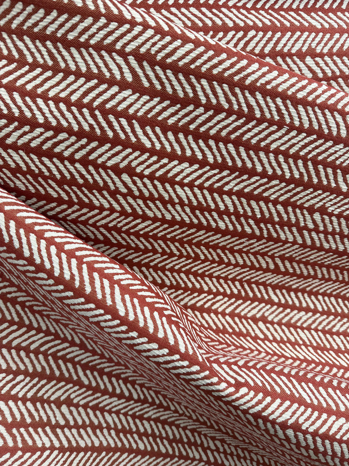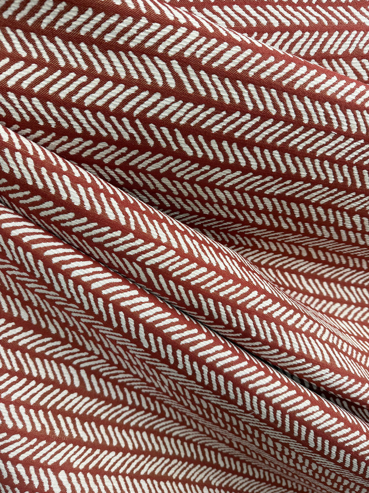 R-Bracket in color Salsa is a Railroaded Broken Herringbone Stripe Jacquard, 54" Wide, 100% Polyester, Repeats: H=7.25" V=5.75", Double Rubs: 40,000