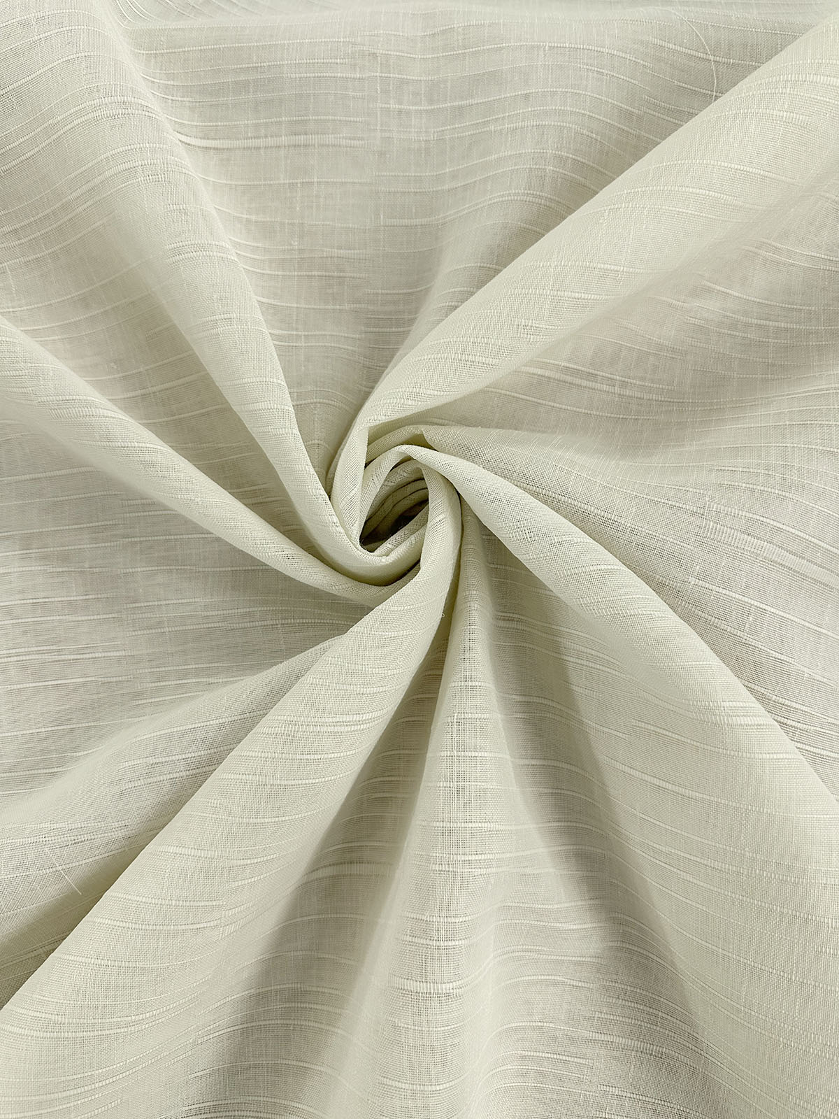 Sweetgrass in the color Champagne is a 118" Stripped Slub Sheer, 100% Polyester, Repeat: H=11.25" V=8.75", Passes NFPA 701. Made in Turkey