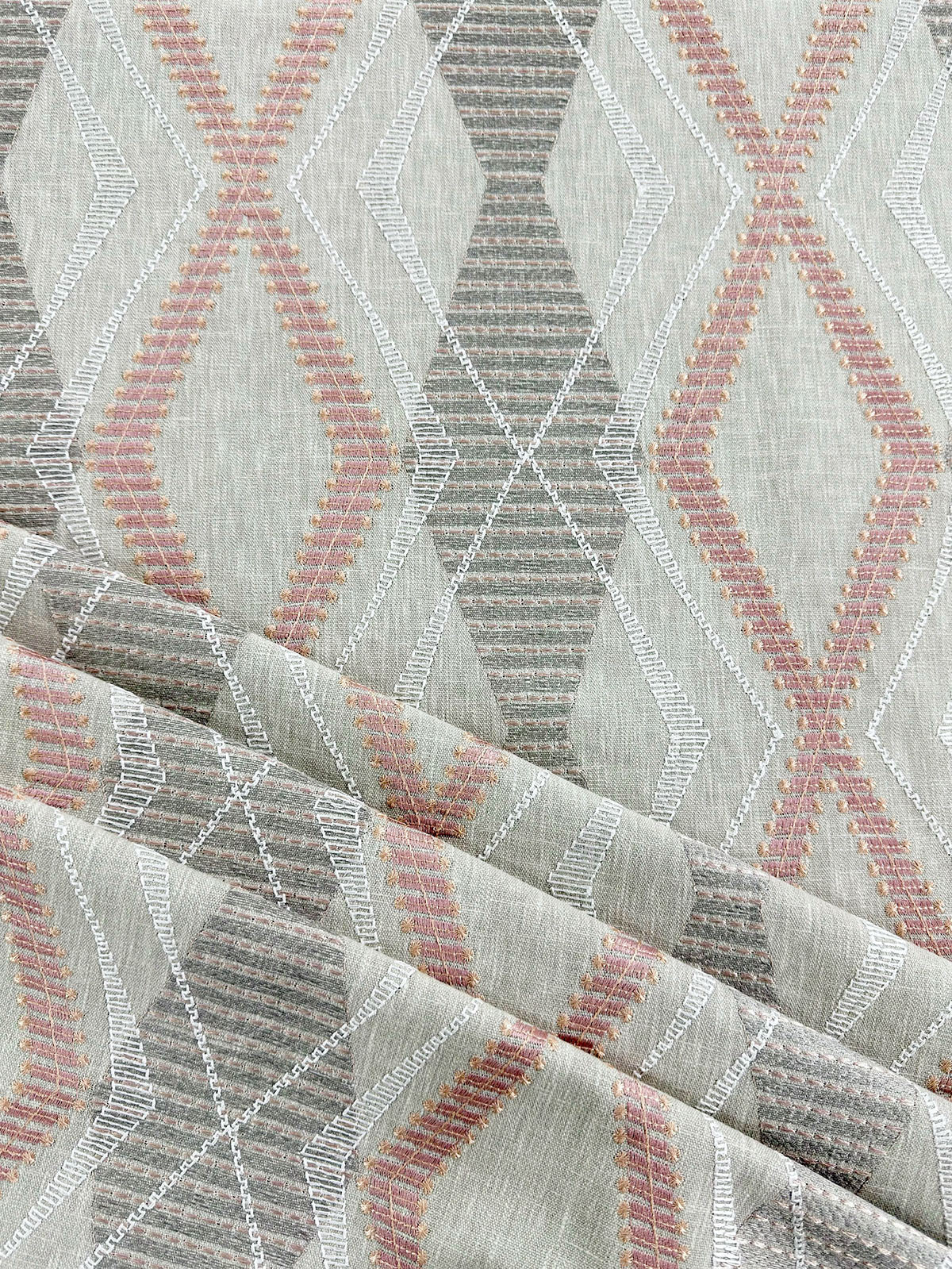 Embroidered Diamonds, 54" Wide, 28% Cotton 72% Polyester Emb: 100% Poly Repeats: H=8.875" V=9.25" Double Rubs: 30,000